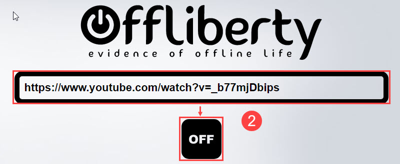 Offliberty使い方〜ステップA Offlibertyの公式サイトを開き、先コピーした動画のURLをテキストボックスにペストして、下の「OFF」ボタン或いはキーボードにある「Enter」キーを押してください。するとOfflibertyでwaitという英語が出てきて、Offlibertyから動画URLを分析するのを少々お待ちください。