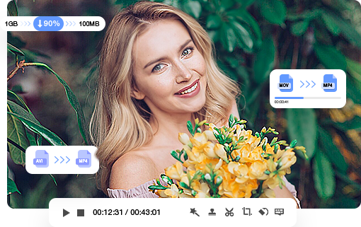 Reduzieren Sie die Videogröße um bis zu 90 %, z. B. 1 GB auf 100 MB. |