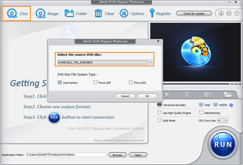 Insert the DVD you want to rip with menus into DVD drive. Launch WinX DVD Ripper Platinum and click the DVD Disc button.