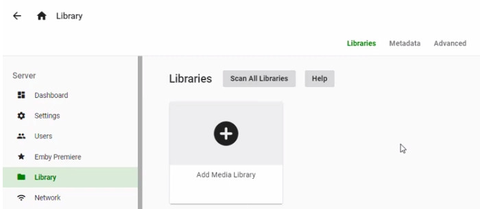- In the left navigation bar, select the "Library" option. Here, you'll find the "Add Media Library" option.