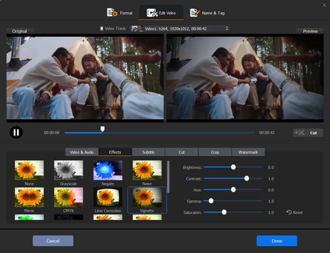 1 There are two ways to locate the eature. Click the Edit toolbar or simply click Options on the main interface and switch to Edit Video.