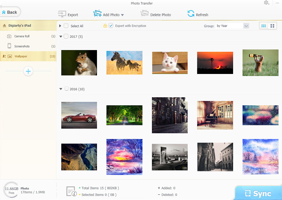 - Encrypt your private photos and videos transferred from iOS to PC.