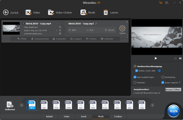Weg 1. MP4 in MP3 mit dem Winxvideo AI umwandeln
