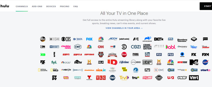 Hulu+ Live TV is always used to compare with YouTube TV. Firstly of all, the channels number it supports is roughly 65+, 20 less than YouTube TV. But the most popular sports streaming channels are included, MLB network, NBA, ESPN, TBS, etc. Secondly, this top free MLB sports streaming website costs you $5 more than YouTube TV, $69.99 per month.