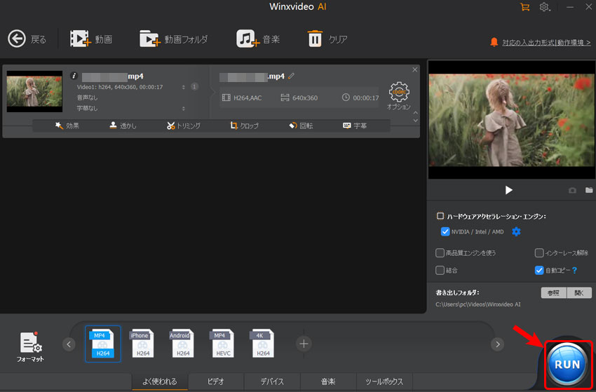 以下では、Winxvideo AIを使用して動画のフレームレートを変換する手順を説明します。