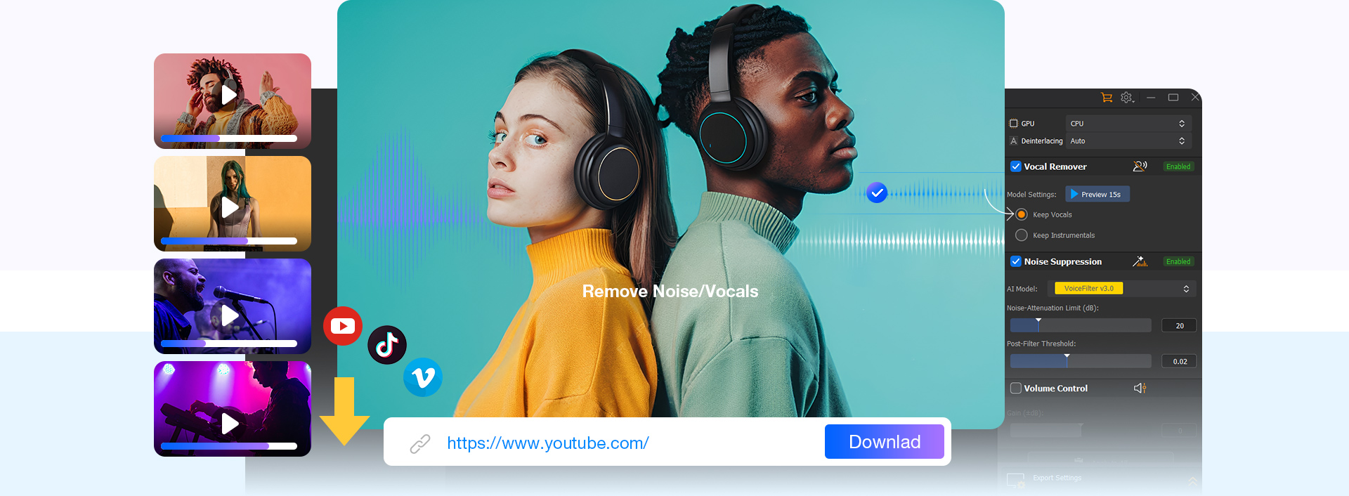 Download videos & audio from YouTube, TikTok & 1,000+ sites. Record live streams, trim, and edit. Start Now →